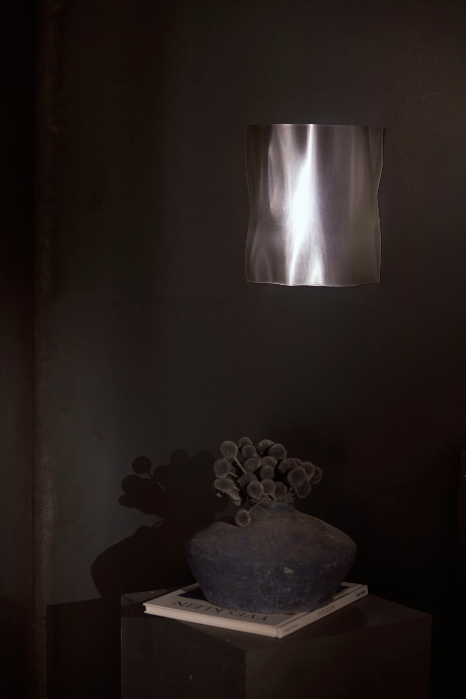 This 3D-printed wall light showcases a rippling, draped silhouette that plays with reflection and shadow, casting an ambient glow that enriches its surroundings.