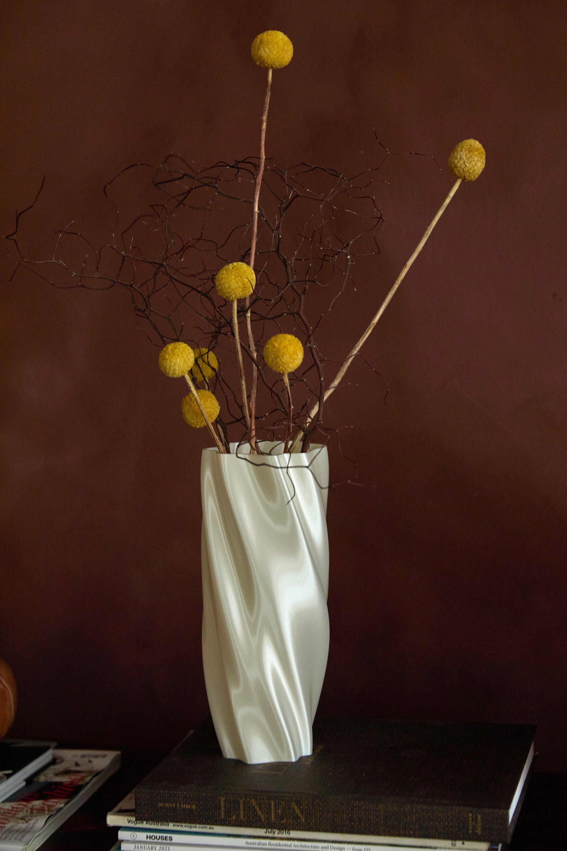 This 3D-printed vase is designed to complement both fresh and dried flowers, allowing you to personalize your space with natural beauty.
